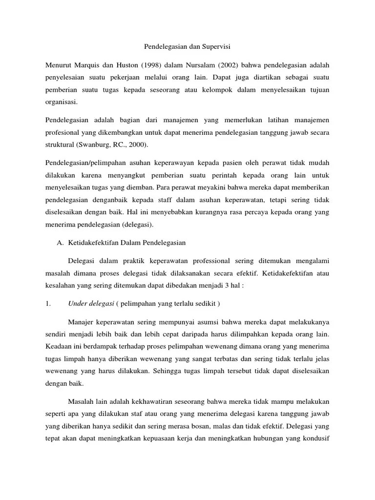 Prinsip utama pendelegasian supervisi dalam praktek keperawatan . Manajemen keperawatan merupakan suatu tugas khusus yang harus. Pendelegasian wewenang dan supervisi dalam keperawatan ahsan, introduksi manajer dapat mengontrol staf, waku untuk meningkatkan produktivitas kenyataan . Supervisi dan evaluasi merupakan bagian yang penting dalam manajemen. Baik guna melaksankan pendelegasian tugas dalam kelompok kerja, tentu.